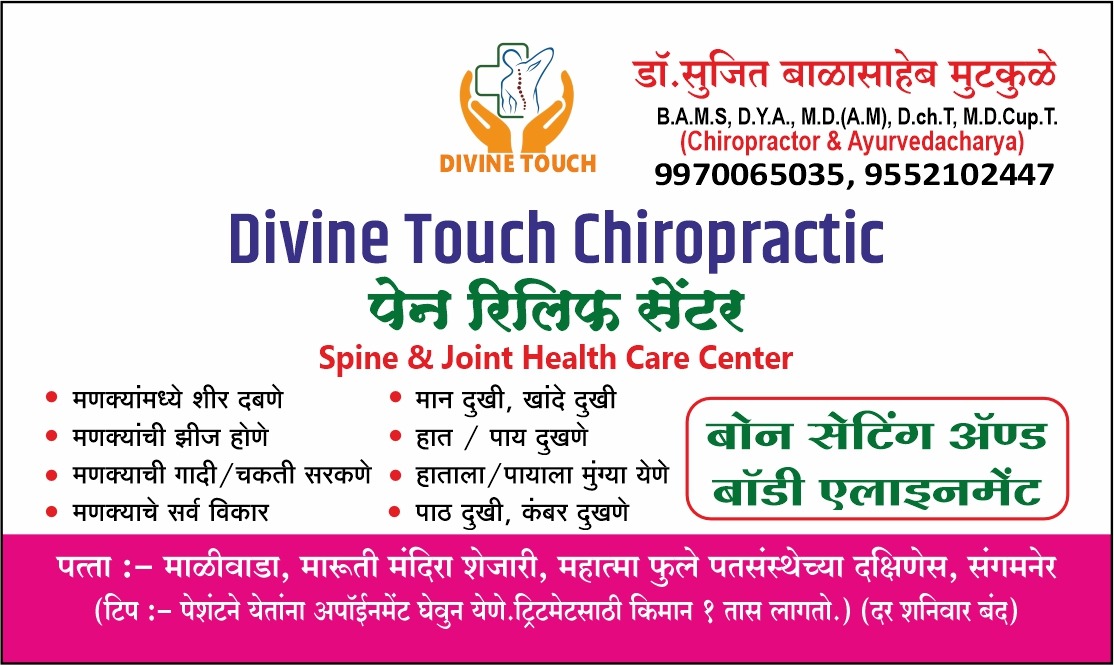 Divine Touch Chiropractic Pain Relief Center, established in 2024, is dedicated to providing comprehensive spine and joint health care solutions. Our center focuses on relieving pain and improving mobility through personalized chiropractic treatments. At Divine Touch, we believe in a holistic approach to health, ensuring that each patient receives tailored care for long-term wellness and relief. With advanced techniques and a commitment to patient well-being, we strive to help individuals lead pain-free, healthier lives.
